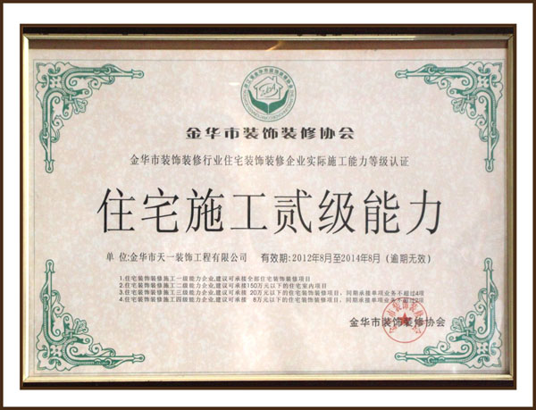 金華市天一裝飾工程有限公司成立于2003年,公司注冊資金31000000萬元,擁有**建筑裝飾專業(yè)承包貳級和建筑工程施工總承包叁級資質。是金華市裝飾裝修行業(yè)核心企業(yè)、金華市裝飾裝修協(xié)會主委單位、金華市裝飾裝修協(xié)會常務理事單位、金華市裝飾行業(yè)優(yōu)秀誠信企業(yè)、中國裝飾行業(yè)網(wǎng)絡誠信品牌、公司于2017年加入金華市東陽商會,是金華東陽商會常務副會長單位。